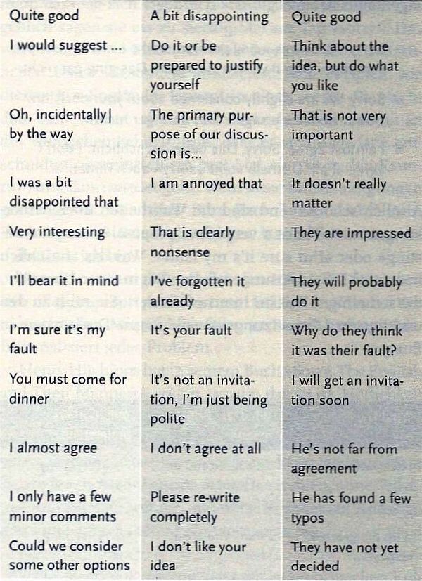 Die lexikalisch eingeschobenen „101 teuflischsten Patzer, die wir im Englischen machen“, Tabellen mit „richtig“ und „falsch“, Sätze die denglisch klingen, aber doch korrekt sind, Listen gängiger Abkürzungen, üblicher Germanismen im englischen Sprach-Alltag, Formulierung mit der Erläuterung, wie sie verstanden werden, aber tatsächlich gemeint sind (teuflisch lustig!) und vieles andere mehr ergänzen diesen sehr empfehlenswerten Englisch-Unterricht für „runaways“, will sagen Fortgeschrittene. Das unfreiwillig Komische, das sich bisweilen auch zur Peinlichkeit gestalten kann, lernt der aufmerksame Leser erkennen und vermeiden. „Zum Beispiel, wenn Sie beim Eisverkäufer »two ice balls« bestellt, die Kollegen über den »beamer in the conference room« informiert oder sich über eine »genial idea« gefreut haben. But don’t make you worries!“
