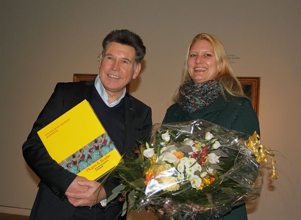 Heute konnten das Von der Heydt-Museum Wuppertal, Turmhof 8, den 100.000 Besucher des Jahres 2016 begrüßen. Museumsdirektor Dr. Gerhard Finckh überreichte Tanja Györy-Kiss einen Katalog der derzeitigen Ausstellung „Degas & Rodin – Giganten der Moderne“ sowie einen Blumenstrauß. Überrascht und hocherfreut nahm die Düsseldorferin die Geschenke entgegen. Sie hatte ihren Urlaub genutzt, um das Von der Heydt-Museum zu besuchen. „Ihre Ausstellungen hier sind großartig“, sagte die begeisterte Kunstfreundin. Sie lasse sich keine der großen Ausstellungen in Wuppertal entgehen. „Mit 100.000 Besuchern zum jetzigen Zeitpunkt können wir am Ende des Jahres mit einer Bilanz rechnen, die um einiges höher sein wird als in den vergangenen Jahren“, freute sich Dr. Gerhard Finckh über die beachtliche Zahl.