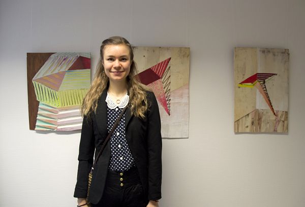 Ihre Werke beschreibt die 24-Jährige so: „Mir dienen Ausschnitte von natürlichen Formen und Gegenständen sowie von tunnelartigen Zwischenräumen in meiner praktischen Arbeit bis dato immer als Grundlage für die weitere Auseinandersetzung. Ich versuche diese Elemente im Arbeitsprozeß in geometrische Formen, die meist aus Vielecken zusammengesetzt sind, zu übersetzen. Hierbei beschäftige ich mich mit verschiedenen Medien: Zunächst zeichne ich meist auf Papier und weite diese Zeichnungen immer mehr aus. So entstehen Malereien auf Holz, kleinere Skulpturen oder sogar Rauminstallationen.“