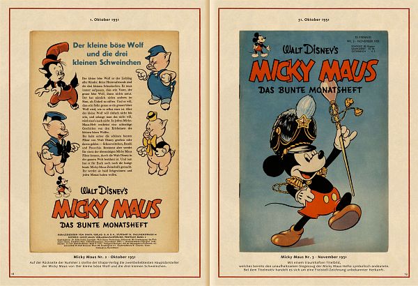 Am 29. August 1951 begann mit dem deutschen Micky Maus-Heft Nr. 1 eine publizistische Erfolgsgeschichte ohnegleichen. Für 75 Pfennige (ein Preis, der übrigens bis Ende 1961, also mehr als zehn Jahre lang stabil blieb!) gab es von diesem Tag an am Kiosk allmonatlich ein Comic-Heft, das Kinder und Erwachsene gleichermaßen amüsierte und pädagogisch durchaus wertvoll unterhielt. Als klein(st)er Zeitzeuge war ich damals zwar noch nicht des Lesens, wohl aber des Schauens fähig, und so mußte meine große Schwester mir die Geschichten von Donald Duck und seinen Neffen Tick, Trick und Track, deren reichem Onkel Dagobert und seinen emsigen Feinden, den Panzerknackern, von Ede Wolf, seinem Sohn Wölfchen, den drei kleinen Schweinchen und dem ruppigen Gevatter Bär, von Klein Adlerauge, dem verrückten, aber genialen Erfinder Daniel Düsentrieb und seinem Helferlein, von Oma Duck und Franz Gans, Klarabella, Rudi Ross und Glückspilz Gustav Gans - und von der schlauen Maus Micky, dem dusselig-gutmütigen Goofy und dem klugen und treuen Hund Pluto, Kater Karlo und seinen Spießgesellen, Klein Adlerauge oder Dumbo vorlesen. Das geschah oft auf dem Rücksitz des Brezel-Käfers, in dem unser Vater uns damals auf seinen Vertreter-Touren durch ganz Hessen mitnahm, während unsere Mutter in der Redaktion der „Offenbach-Post“ das karge Familien-Aufkommen verbesserte. Da waren 75 Pfennige für ein „Heftchen“ sehr viel Geld, aber erstaunlicherweise wurde es für das Micky Maus-Heft ausgegeben - oder sollte man besser sagen: angelegt? Die Hefte wurden bis zum völligen Zerfall - Hermann Mencer berichtet davon - wieder und wieder gelesen – ab 1956 gab es alle 14 Tage eins, noch später und bis heute wöchentlich. Als in den frühen 60ern - na klar, wir waren unseren Heftchen und Helden treu geblieben und nutzten mittlerweile unser schmales Taschengeld, wenn nicht die Oma als Finanzier einsprang - in der Mitte der Hefte ein informativer Teil mit Artikeln zu Wissen, Technik und Unterhaltung aus allerlei Bereichen auftauchte, verschlangen wir den ebenso begeistert. Mit Eifer wurden die Sammel-Schnipps für den MM-Klub ausgeschnitten und an den Verlag geschickt, damit am Fahrrad der Klub-Wimpel (20 Schnipps für den Wimpel, 50 für die Fahne) flattern konnte und man dazu gehörte. Na ja, wer wirklich „dazu“ gehörte, der hatte gleichzeitig auch den Wimpel vom „Sternchen“ dran, denn das verschlangen wir mit der gleichen Begeisterung.