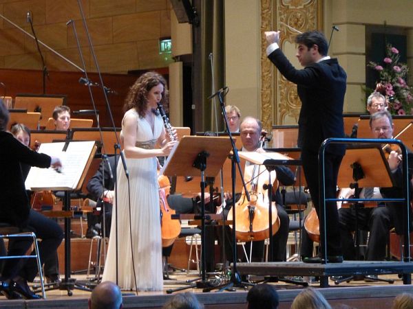 Darauf folgte das Klarinettenkonzert von Jean Francaix, dessen kompositorisches Werk sich durch Leichtigkeit, Ironie und Gefälligkeit auszeichnet. Schon im Alter von 10 Jahren erhielt er von der großen Nadja Boulanger Kompositionsunterricht. Später pflegte er gute Kontakte zu Francis Poulenc, Darius Milhaud und der Groupe des Six, schätzte aber auch den französischen Impressionismus und den Neoklassizismus Strawinskys. Francaix quälte das Publikum nicht mit Atonalität und Zwölftonkonstruktionen, sondern komponierte publikumsnah und unterhaltsam. Von Hause aus Pianist, schrieb er viel für Bläser, insgesamt 5 Opern und 16 Ballettmusiken. Sein Klarinettenkonzert von 1968 bezeichnete er selbst als „eine Art Kunstflug für das Ohr, voll von Loopings, Pirouetten und Sturzflügen“, ein Stück voller Virtuosität, Leichtigkeit und Witz, gerade das richtige für Shirley Brill. Sie erhielt zunächst Klarinettenunterricht in Israel, später bei Sabine Meyer in Lübeck und Richard Stoltzman in Boston. U.a. gewann sie den Internationalen ARD-Musikwettbewerb 2003 und konzertierte als Solistin mit vielen großen Orchestern der Welt, unterrichtet an der Hans Eisler Hochschule für Musik sowie an der Barenboim-Said Akademie in Berlin, spielt seit 2009 die Soloklarinette beim Barenboimschen West-Eastern Divan Orchester und heute eben in Wuppertal. Das flinke Eingangsthema wird mit schnellen Repetitionen eines Tons vom Fagott aufgefangen, die später in der Kadenz mit Trillerchromatik, Pausen und kurzen Einwürfen wieder auftauchen. Das Scherzo im ¾ Takt endet überraschend und im Andante des 3. Satzes entsteht Stimmung zwischen Klarinette und Flöte zu Streicherpizzicato. Das technisch schwierige, gleichwohl amüsante und flotte Konzert endet im Finale furioso allegrissimo. Schwerelos, virtuos und mit elegantem Körpereinsatz zog die Solistin zusammen mit dem gut aufgelegten Orchester unter dem jungen armenischen Dirigenten Sergey Smbatyan alle Register zwischen Volksfestmusik und sprechendem Vogelgezwitscher. Das hatte wahrhaft Charme. Für den anhaltenden Applaus und die Blumen bedankte sich Frau Brill mit Debussys „Syrinx“. Ursprünglich für Querflöte, hinterließ auch mit Klarinette die musikalische Verwandlung der Nymphe in ein Schilfrohr einen großen Eindruck. Traumhaft das ausatmende Diminuendissimo am Ende.