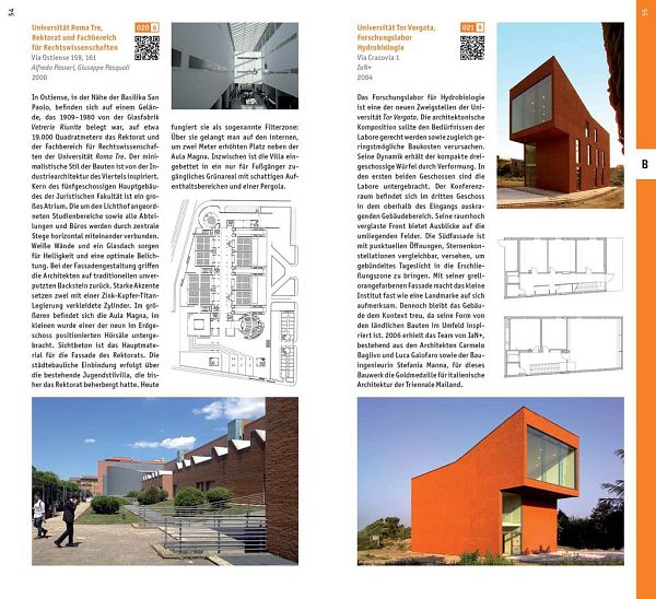 Gegliedert nach der Nutzung der Neubauten (Kunst und Kultur, für Bildung, u.a.) werden die Objekte vorgestellt. Anhand von Karten und Geodaten (als QR-Code) findet sich der Besucher/Leser gut zurecht. Der Führer beginnt mit der Erläuterung der Gedenkstätte Fosse Ardeatine. Dieses begehbare Mahnmal am Ort des Geschehens entstand 1949 in Erinnerung an 355 Zivilisten, die im März 1944 von den deutschen Besatzungssoldaten umgebracht worden sind. Mit der der heiligen Theresa von Kalkutta gewidmeten Kirche „Beata Teresa di Calcutta“, die im Rahmen des Bauprogramms „50 chiese per Roma 2000“ wird Rom als Weltzentrum der katholischen Kirche auch im modernen Kirchenbau bestätigt. Und zuletzt geht es um den Platz, auf dem das Mausoleum des Augustus steht, des Begründers der römischen Architektur in der Antike. Neun Stadtspaziergänge zu besprochenen Objekten regen zu einem weiteren Besuch Roms an. Empfehlenswert.