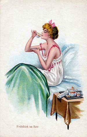 Dafür steht eine sogenannte Trembleuse aus dem 18. Jahrhundert. Das ist eine spezielle Tasse für Trinkschokolade, die gerne am Morgen getrunken wurde. Ein Betttablett und ein praktischer Handstaubsauger sind als Hilfsmittel für ein modernes Frühstück im Bett in der Ausstellung zu sehen. Das Bett ist nicht nur ein Ort von Ruhe und Erholung, sondern auch ein Ort von Krankheit und Leiden. Ein längerer Aufenthalt im Bett geschieht meist nicht aus Bequemlichkeit, sondern weil eine Krankheit einen Menschen ans Bett fesselt.
