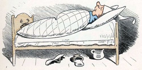 Von nicht unwesentlicher Bedeutung ist natürlich auch die Bettdecke. In ländlichen Gegenden, wo sich Gams und Murmeltier noch „Gute Nacht!“ sagen, gibt es, man glaubt es kaum, in einigen kleineren Pensionen und Hotels noch das amorphe Federbett. Da haben sie dann die Wahl: unter der Federmasse erstickt werden oder erfrieren, weil sich bald schon das Rote Meer der Daunen teilt und sie zwischen zwei Feder-Wülsten unter einer dünnen Schicht des Linnens liegen. Gerne fällt das gute alte Plumeau auch (s.o.) aus dem Bett, und bis sie das merken, vergehen oft lange frostige Viertelstunden. Ein immer wiederkehrender Kampf ist mit den oft mehrschichtigen Decken auszufechten, die vom Stubenmädchen so fest und tief unter die Matratze gestopft werden, daß sie wie in einem Steckkissen liegen und sich wie Ramses II. beim Einbalsamieren fühlen. Oder sie bekommen ein schaumstoffgefülltes Kopfkissen, das sich beharrlich weigert, eine Mulde für den Kopf zuzulassen – das liegt dann ganz schnell draußen und sie schlafen ohne besser.