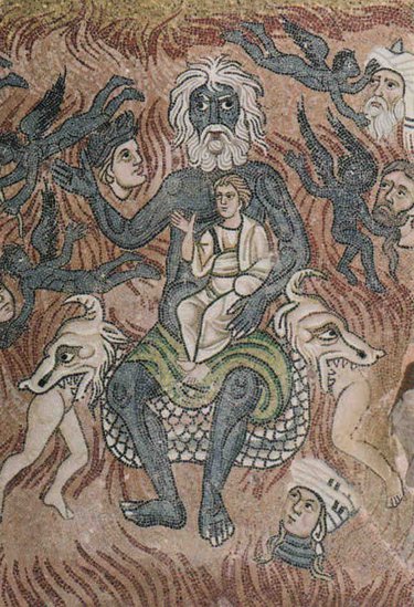 Das Abbild der Hölle. Ausschnitt eines venezianischen Mosaiks, aus der Basilika auf der Insel Torcello, frühes Mittelalter