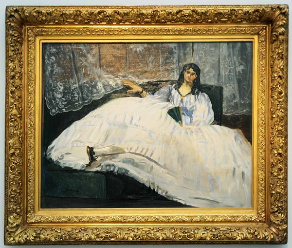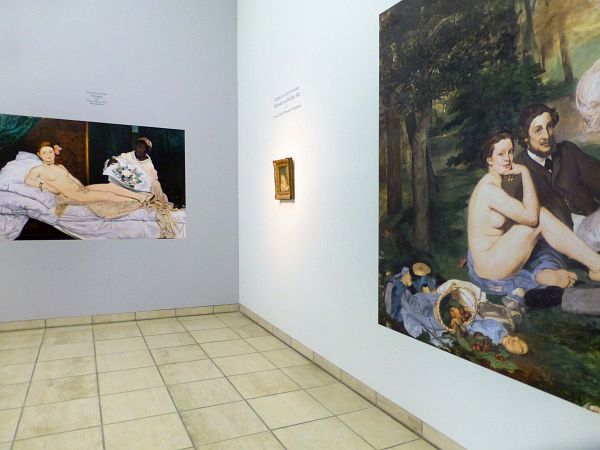 Der Anspruch ist hoch. Die Schau, so ist zu vernehmen, präsentiere Manets „ganzes Œuvre“, von „den ersten tastenden Versuchen als Schüler von Thomas Couture“ bis hin zu den „letzten so strahlenden Gartenbildern aus Rueil von 1882.“ In der Tat spannt die Ausstellung den Bogen von frühen Arbeiten des Künstlers bis hin zum Spätwerk, doch bleibt sie – nicht zuletzt angesichts unerfüllbarer Leihwünsche – hochgradig selektiv. Wichtige Werke sucht man vergebens: etwa den „Absinth-Trinker“ von 1859, „Die Musik in den Tuilerien“ von 1862, das „Porträt Émile Zola“ von 1868, „Die Erschießung Kaiser Maximilians von Mexiko“ und „Der Balkon“ aus derselben Zeit, „Die Barke (Monet malend auf seinem Hausboot)“ von 1874, die Venedig-Bilder aus demselben Jahr, die „Nana“ von 1877 und „Die Bar in den Folies-Bergères“ von 1881/82, um nur einige zu nennen. Und auch die beiden 1863 gemalten „Skandalbilder“, mit denen Manet Furore machte und Kunstgeschichte schrieb , nämlich „Das Frühstück im Grünen“ und die „Olympia“ aus dem Pariser Musée d’Orsay, standen für Wuppertal nicht zur Verfügung. Immerhin können beide Gemälde im zweiten Raum der Ausstellung als Reproduktionen in Originalgröße betrachtet werden. Welche Aufregung von diesen Bildern einst ausging, welche öffentliche Ablehnung sie erfuhren, ist mehr als hundertfünfzig Jahre nach ihrer Entstehung kaum mehr nachzuvollziehen. Insbesondere die „Olympia“ war Zielscheibe heftigster Kritik. Moralische Entrüstung über das Sujet – eine unbekleidete Prostituierte, die den Betrachter direkt anschaut und als scham- und sittenlos gebrandmarkt wurde –, verband sich mit der Empörung über eine die Akademienormen verletzende Malweise – flach, schattenlos, „leichenfahl“, ein „schwarz umrandetes Skelett in einer Zwangsjacke aus Gips“ und so fort. (Was die damalige Kritik anbelangt, ist Dino Heickers im Parthas Verlag Berlin erschienenes „Lesebuch zum Pariser Salon von 1865“ unter dem Titel „Manet, ein Streit und die Geburt der modernen Malerei“ übrigens eine wahre Fundgrube.)