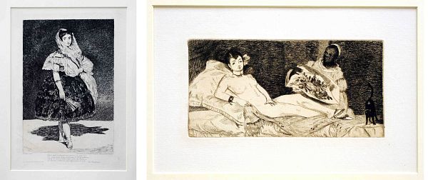 In einem der folgenden Räume werden die Anfänge Manets als Privatschüler im Atelier des erfolgreichen Salonkünstlers Thomas Couture, des Malers des berühmten historistischen Bildes „Die Dekadenz der Römer“ von 1847 (nicht in der Ausstellung), beleuchtet. Manet teilte Coutures Bewunderung für Tizian, Tintoretto und andere Italiener. Im Pariser Louvre entstand eine Kopie nach Tizians „Jupiter und Antiope“, die aus dem Pariser Musée Marmottan entliehen werden konnte, in den Florentiner Uffizien kopierte der Künstler die „Venus von Urbino“, die ihm die Inspiration für seine „Olympia“ lieferte, die ursprünglich schlicht „Venus“ heißen sollte. Obwohl Manet als Neuerer der Malkunst und Galionsfigur der Moderne gilt, gründet sein Frühwerk tief in der Tradition. Dies zeigt auch „Das Frühstück im Grünen“, in dem Giorgiones „Fête champêtre“ anklingt und direkt aus Marcantonio Raimondis „Urteil des Paris“ nach Raffael zitiert wird. Bedeutsam waren ferner Einflüsse der Spanier Murillo, Velázquez und Goya, denen unter der Überschrift „Manet und die Spanienmode“ ein eigenes Kapitel gewidmet ist. Zwei Hauptwerke aus dieser Zeit, „Der spanische Sänger“ von 1860 und „Lola de Valence“ von 1862, die in der Ausstellung leider nicht zu sehen sind, können in Wuppertal ersatzweise als Druckgrafiken (Radierungen) besichtigt werden – wie übrigens auch in zwei Varianten die „Olympia“ sowie andere Radierungen, die Manet nach seinen eigenen Gemälden geschaffen hat.