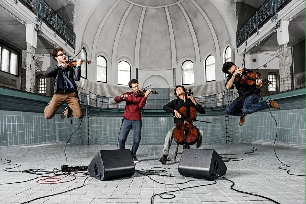 Vision String Quartet – so nennen sich vier junge Musiker aus Berlin. Seit 2012 sind sie als Streichquartett unterwegs, das gern klassische Konventionen hinter sich läßt. Ein Markenzeichen ist das Spielen ohne Noten und im Stehen. Ein weiteres ist das Stilgrenzen überschreitende Repertoire. Im Teo Otto Theater bespielten sie damit gleich zwei Bühnen. Im oberen Foyer erlebte das Publikum Mozart und Schubert, im großen Saal Jazz und Pop.