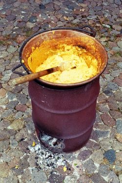 Die mißratene Bohnensuppe Den halben Tag hat es gedauert, bis wir das Wasser in dem riesigen Kessel auf unserer einfachen Feuerstelle zum Kochen gebracht haben. Wir schütten die stundenlang vorbereiteten Zutaten für eine Bohnensuppe hinein, von der erwartet wird, daß sie sowohl schmack- als auch nahrhaft werden soll. Meine Mitköche lassen mich für kurze Zeit mit der brodelnden Suppe allein, denn sie wollen ein Transistorradio herbeiholen, damit das Essen nachher bei Tafelmusik stattfinden kann. Ausschließlich ans Kochen auf Elektroherden gewöhnt, weiß ich mir nicht zu helfen, als die Suppe bald stärker und stärker kocht. Der Rührlöffel fällt mir dummerweise in den Topf. Um die Hitzezufuhr zu drosseln, versuche ich, brennende Holzscheite aus dem Feuer zu ziehen, gebe aber schnell auf. Verzweifelt laufe ich jammernd zwischen dem gedeckten Tisch und der Feuerstelle hin und her - die Situation wächst mir über den Kopf. Schon rinnt die wild überschäumende Bohnensuppe am Kessel hinunter ins Feuer. Ich stoße spitze Schreie aus und ergreife zwei volle Weinflaschen. In meiner äußersten Not schlage ich mit den Flaschen auf die über den Kesselrand quellende Suppe ein und schreie aus Leibeskräften. In diesem Moment kehren meine Mitköche samt Radio zurück. Ich kann ihnen nach dem Geschehenen nicht in die Augen sehen und erwarte am Boden liegend ihren gerechten Zorn. »Tötet mich«, fordere ich sie auf, weil mir das die sauberste Lösung zu sein scheint. O nein, davon wollen meine Mitköche nichts hören - keine Spur von Anklage! © Eugen Egner