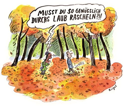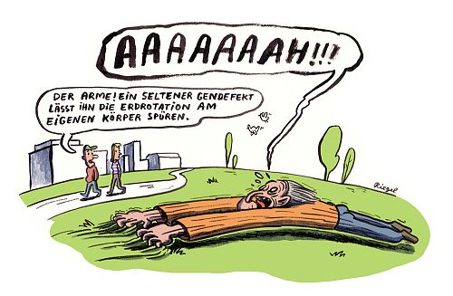 Brennende philosophische und religiöse Themen, gesellschaftliche und zwischenmenschliche Probleme, Fragen zu Alltag, Natur und Physik, die Leonard Riegel in der Tat mit Zeichenstift und gelegentlich recht eigenwilligen Interpretationen, jedoch durchaus komisch und abseits vom Mainstream aufgreift. Ob wir dadurch eine Antwort auf die Fragen bekommen, die uns umtreiben, möge jeder für sich entscheiden. Für ein Grinsen oder einen Lacher, gelegentlich für ein Aha! reicht es aber allemal. Außerdem erfahren wir endlich einmal, was es mit den Besuchern aus dem All – an die glauben doch alle heimlich – auf sich hat und wie man mit ihnen umgehen könnte.