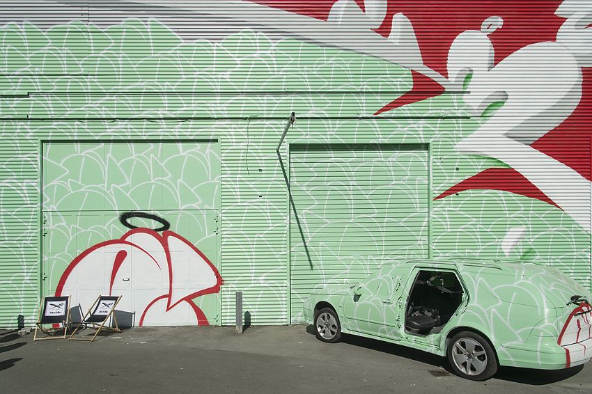 „Wandelism“ Street-Art in einer zum Abriß bestimmten Autowerkstatt in Berlin-Wilmersdorf