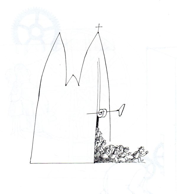 Kirchenflucht © Jules Stauber Veröffentlichung der Illustration mit freundlicher Genehmigung der Rechteinhaber.