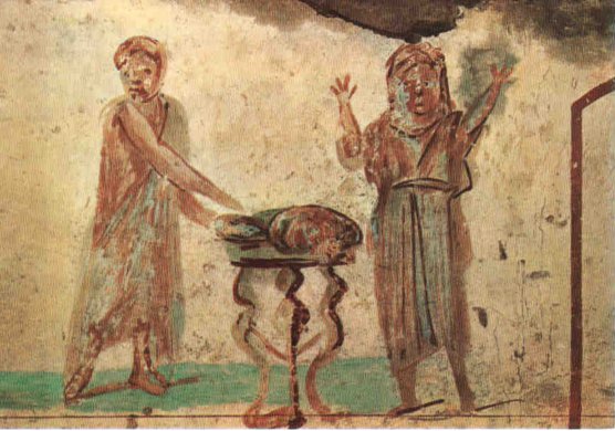 Abendmahlopfer, 3. Jh. N. Chr. Calixtus-Katakomben, Rom.