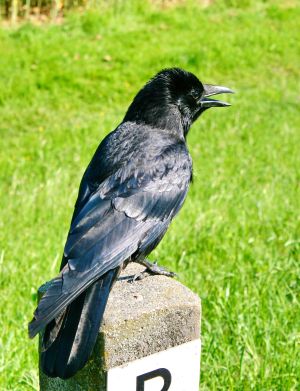 Ein Rabe saß auf einem Meilenstein