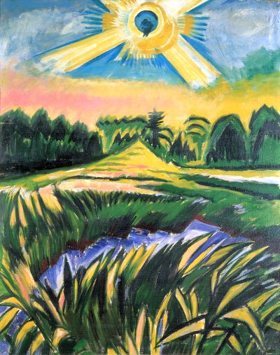 Wie in jedem Sommer ist parallel eine umfangreiche Auswahl aus dem Bestand der Kunsthalle zu sehen. Dr. Stefan Borchardt, Direktor der Kunsthalle, hat sie in diesem Jahr als eigene Ausstellung unter dem Titel „Auferstehungen“ konzipiert. Ihm war wichtig zu zeigen, wie nach dem Ende des 1. Weltkrieges Künstlerinnen und Künstler die traumatischen Erlebnisse in den Schützengräben und an der Heimatfront thematisierten, die gesellschaftlichen Umbrüche nach dem November 1918 aufarbeiteten, aber auch die Flucht in die Natur und in das Privatleben bis hin zur Entwicklung neuer Utopien reflektierten. Zu sehen sind Werke der Klassischen Moderne aus der Sammlung der Kunsthalle, u.a. Corinth, Goetz, Grosz, Heckel, Mueller, Pechstein (s.u.), Scharl,Schmidt-Rottluff, Wiegers - nur Werke von Dix und Beckmann wurden von anderen Häusern ausgeliehen.