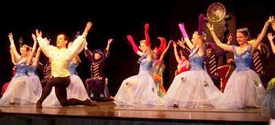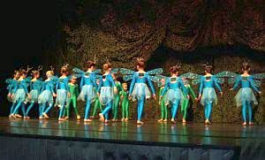 Um es vorweg zu nehmen: es gelang herzerweichend schön! Die Bilder gingen fast nahtlos ineinander über und auch die Kleinsten - von den Täubchen angefangen, über die köstlichen Mäuse, die bezirzenden Libellen, fragilen Grashüpfer, putzigen Zwerge bis hin zu den hüpfenden Orangen - evozierten jeweils begeisterten Zwischenapplaus. Alle Opernhäuser dieser Welt können Meerbusch um ein so engagiertes und mitgehendes Publikum glattweg beneiden. Darüber hinaus boten eine umfangreiche Adelsgesellschaft mit Hofstaat, die Feen der vier Jahreszeiten mit ihren glanzvollen Begleitungen, Schuhmacher, Spanierinnen und tanzende Uhren einen bewegten Rahmen, in dem das auf großen Theatern meist überbordende Bühnenbild und die Requisitenvielfalt entbehrlich erschienen. Wie in manchen Szenen fast 50 Tänzerinnen/Tänzer auf der fürs Ballett doch recht kleinen Bühne Raum fanden, um sich in grandiosen Finales herrlich aufzulösen, war ein Tanzerlebnis von hoher choreografischer Qualität.