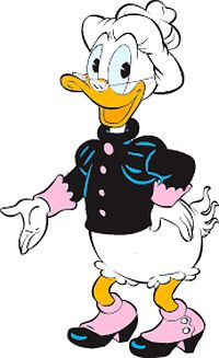 Sie wurde übrigens seinerzeit für die täglichen Donald-Duck-Comicstrips erfunden. Als die herzensgute und von einem starken Sinn für Reinlichkeit beseelte Oma Duck das Licht der Comicwelt erblickte, hatte ihr cholerisch-symphatischer Enkel Donald übrigens nichts zu lachen. Als sie erstmals persönlich in Entenhausen auftauchte, bekam Donald von ihr am Bahnhof zunächst kräftig den Enten-Hals gewaschen. Und auch ihre Enkel Tick, Trick und Track kommen beim Geburtstagsessen nicht ungewaschen an ihren reichlich gedeckten Tisch.