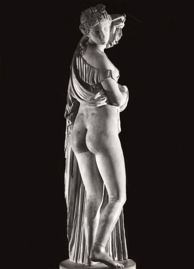 Der nackte menschliche Körper als Skandalon: Es war die griechisch-römische Antike gewesen, die seiner Schönheit sich weit geöffnet hat und ihn feierte, einerlei ob Mann oder Frau. Die Marmorstatue der Kallipygischen Venus stammt aus dem letzten vorchristlichen Jahrhundert, der Epoche des Augustus, als Rom sich zu einer Weltmacht rüstete. Aus den darniederliegenden Städten Griechenlands holten sich die reichen Römer ihre Kunst, ließen die Bronzeplastiken in Marmor nachbilden. Nach dem Untergang der Antike lag auch die Schönärschige lange im Bauschutt der Ewigen Stadt begraben und wurde erst im späten Mittelalter geborgen. Den Kopf hatte sie dabei eingebüßt, doch das süße Gesäß war ohne jede Schramme über die Jahrhunderte gekommen und erfreute die Menschen wie am ersten Tag. Ein Bildhauer des Barock ergänzte den verlorenen Kopf, und er tat das ausgesprochen geschickt. Die Drehung des Kopfes, seine Rückwärtswendung, hinab aufs eigene Gesäß, lenkt den Blick des Betrachters auf das Zentrum der Plastik: diese beiden göttlichen Backen. Er braucht nur dem vorgegebenen Blick der sich selbst genießenden Frau zu folgen. Die Schwarz-Weiß-Fotographie des zwanzigsten Jahrhunderts, im Widerspiel von Licht und Schatten, betont noch einmal die sinnliche Qualität des antiken Standbildes.