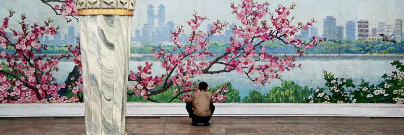 Pompöse Wunderwelten öffnen sich hinter monumentalen Steinfassaden: Marmor und Mosaik, Kassettendecken und Kristallkronleuchter prunken in der dem stalinistischen Moskau nachempfundenen U-Bahn, daneben sieht man Interieurs von stummen Hotels, leeren Restaurants und öffentlichen Gebäuden in den schillerndsten Farben und omnipräsent den „ewigen Präsidenten“ Kim Il Sung. Leer auch die Umkleideräume des erst kürzlich renovierten Stadions „1. Mai“, das geduldig auf eine Fußballweltmeisterschaft wartet, die wohl nie kommen wird.