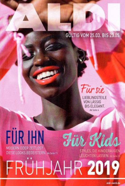 Frau Karakul sollte sich lieber mal über die aktuelle Mode-Werbung der Supermarkt-Kette ALDI Nord aufregen, die ein schwarzes Fotomodell derart plakativ karikiert auf ihr Titelblatt gestellt hat, daß ich mich für dieses auf den Kopf gestellte Black Minstrel regelrecht schäme.