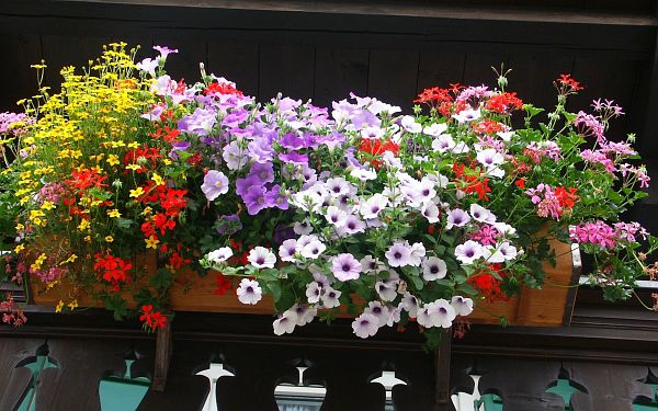 Vorn eine ganze Front von Geranien mit Kornblumen abwechselnd; als Dach oder Laube hochgezogen und gewölbt die seltenen Gloxinien; um die Kapuzinerkresse in der Ecke sind die Bienen und Hummeln beschäftigt; weißes Tausendschön an der richtigen Stelle; und die wilden, mädchenhaften Petunien, bei denen man immer an Italien denken muß.