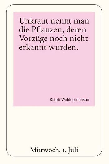 365 oft überraschende, stets tiefgründige, überwiegend humorvolle, gerne wegweisende, gelegentlich freche, immer anregende und grundsätzlich Mut machende Gedanken von großartigen Persönlichkeiten aus Kultur und Geschichte haben die Herausgeber zusammengetragen. Nichts lenkt auf den schlicht, aber prägnant gestalteten Blättern von den Worten der beherzigenswerten Botschaften von u.a. Mark Twain, Jeremias Gotthelf, Marcus Tullius Cicero, Ralph Waldo Emerson, Jean Paul, Abraham Lincoln, Kurt Tucholsky, Marilyn Monroe, Virgiani Woolf und vielen anderen mehr ab, die vielleicht dem einen oder anderen unter uns und Ihnen helfen, mehr aus dem Tag zu machen, vielleicht sogar ein besserer Mensch zu werden.