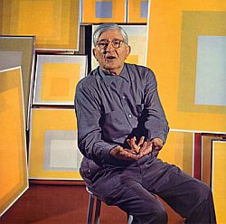 In den vierziger Jahren entwickelte Albers zunehmend auch eine eigenständige künstlerische Position, die sich in wichtigen Aspekten mit den Interessen der Maler des Abstrakten Expressionismus berührt. Dazu zählt insbesondere die Betonung der Farbe in ihrer Eigensprachlichkeit. Albers war dann auch, gemeinsam mit Piet Mondrian, derjenige europäische Maler, der am Beginn der 1960er Jahre für eine neue Generation amerikanischer Künstler, die unter dem Begriff 'Minimal Art' zusammengefaßt wurden, Möglichkeiten entwickelt hatte, die über bestimmte Prämissen des Abstrakten Expressionismus hinausführten. Albers' 'Homages to the Square' sind die tendenziell unendliche Variation eines Themas, das aber durch das Spiel der Farbe immer neue Perspektiven offenbart.