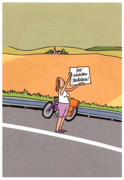 Dem Cartoonisten und Autor Peter Butschkow sind in den vergangenen Jahren ein gutes Dutzend lustige Überlebens-Ratgeber zu Themen, die uns alle angehen, aus der Schreib- und Zeichenfeder geflossen. Das rein mechanische Fahrradfahren mit eigener Muskelkraft war auch schon dabei. Nun hat er sich erneut in einen Fahrradsattel geschwungen, allerdings des besagten E-Bikes, das den stolzen Fahrer solange geschmeidig durch die Welt trägt, wir der Akku es zuläßt. Ist der allerdings übermütig leergestrampelt, heißt es selber in die Pedale treten – oder schieben.