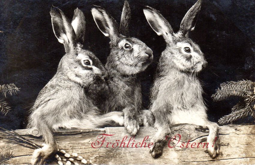 Viele von Ihnen kennen das verblüffende „Dreihasenfenster“ im Kreuzgang des Paderborner Doms (siehe unten), das den Betrachter vor das Rätsel stellt, welchem der drei Mümmelmänner nun die Ohren wirklich gehören. Es gibt viele theologische Deutungen der darin steckenden Symbolik. Wir haben in einer uns zugesandten Fotografie den Beweis gefunden, daß die armen Hasen sich beileibe nicht die Ohren teilen müssen – jeder hat (siehe oben) seine eigenen zwei. Frohe Ostern!