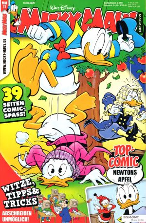 Auch im neuen Micky Maus Magazin reist Donald Duck mit Daniel Düsentriebs Zeitmaschine (Ihr erinnert Euch: im vorigen Heft besuchte Donald Galileo Galilei) weit zurück: Es geht ins Jahr 1665 zu dem berühmten Naturwissenschaftler Isaac Newton, der das Prinzip der Schwerkraft entdeckt hat – man sagt durch einen Apfel, der ihm vom Baum bei einem Nickerchen auf den Kopf fiel. Daß sein tolpatschiger Vetter Dussel mit dabei ist, sorgt natürlich für allerlei Pannen und Turbulenzen. Tormod Løkling hat die Geschichte (fast) ziemlich dicht an der Wirklichkeit nacherzählt, und Arild Midthun hat sie (auf-)gezeichnet. Aber Donald muß im Heft 11/2020 des Micky Maus Magazins auch noch andere turbulente Abenteuer bestehen, so einen kampfreichen Ausflug ins Mittelalter, die Zeit von Drachen und Burgfräuleins. Daß es letztlich nur ein Traum war, kann den Comic-Lesern egal sein, man hat sich gut unterhalten.