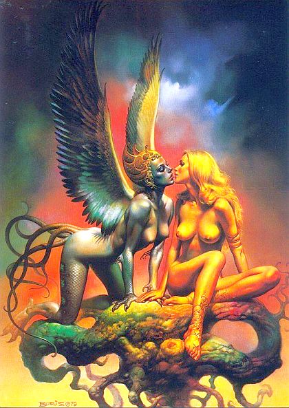 Schließlich erscheint auch Boris Vallejo in der Riege der Ausgewählten. Als legitimer Nachfolger des 2010 gestorbenen Frank Frazetta durfte er auch ein Vorwort zu Dian Hansons Buch beisteuern. Er liebt geflügelte Bestien, muskulöse Männer mit mächtigen Bizeps und Sixpacks – und er liebt schöne Frauen mit explizit erotischer Ausstrahlung und perfekten Busen – so wie Frazetta und - siehe oben – fast alle seiner Kollegen und Kolleginnen.