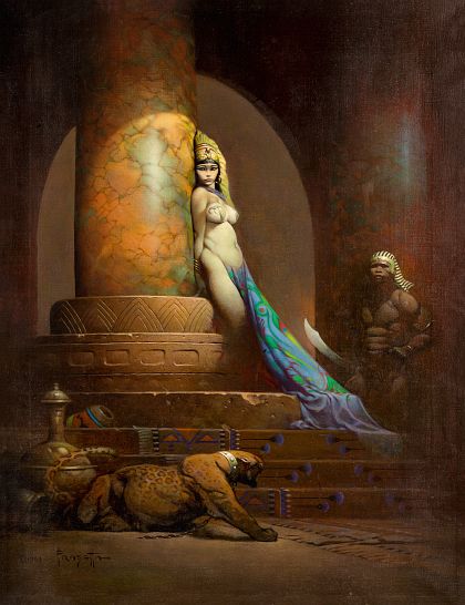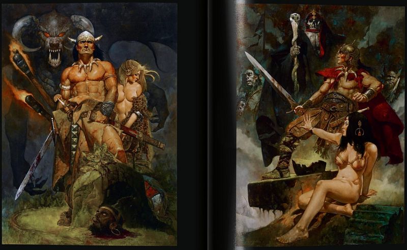 Frank Frazetta gilt wie erwähnt als Monster-Schöpfer und Muskel-Macher als der bekannteste und vermutlich auch der größte Fantasy-Künstler. Seine furchtlosen gewaltigen Berserker, wilden Tiere, wüsten Dämonen und natürlich üppig ausgestatteten oft hilflosen Weibchen mit D-Cups (ohne Cups) gehören zum Kanon der Fantasy Art. Aber er hat auch mal mit Al Capp an dessen Comic Li´l Abner gearbeitet, Harvey Kurtzmans Little Annie Fanny mit gestaltet und etliche Filmplakate entworfen.