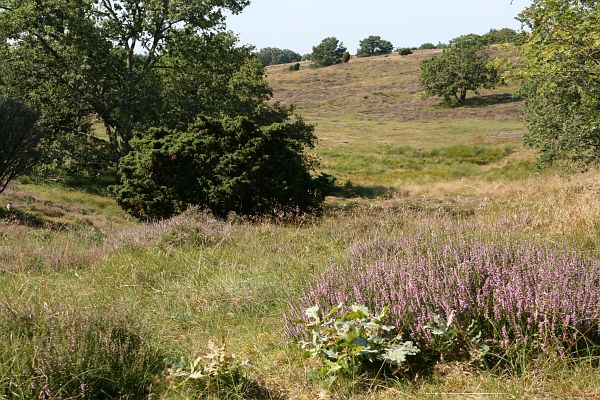 Im warmen Mittagssonnenstrahle, Ein rosenroter Schimmer fliegt Um ihre alten Gräbermale; Die Kräuter blühn; der Heideduft Steigt in die blaue Sommerluft. Laufkäfer hasten durchs Gesträuch In ihren goldnen Panzerröckchen, Die Bienen hängen Zweig um Zweig Sich an der Edelheide Glöckchen, Die Vögel schwirren aus dem Kraut - Die Luft ist voller Lerchenlaut. Ein halbverfallen niedrig Haus Steht einsam hier und sonnbeschienen; Der Kätner lehnt zur Tür hinaus, Behaglich blinzelnd nach den Bienen; Sein Junge auf dem Stein davor Schnitzt Pfeifen sich aus Kälberrohr. Kaum zittert durch die Mittagsruh Ein Schlag der Dorfuhr, der entfernten; Dem Alten fällt die Wimper zu, Er träumt von seinen Honigernten. - Kein Klang der aufgeregten Zeit Drang noch in diese Einsamkeit. Theodor Storm