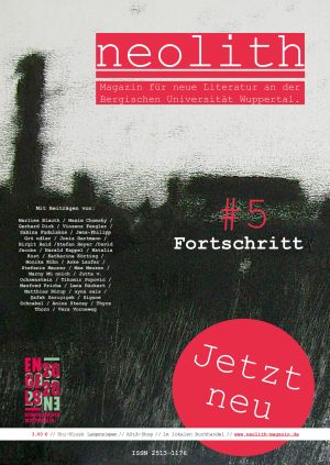 neolith ist ein Magazin für neue Literatur an der Bergischen Universität. Die aktuelle Ausgabe ist Friedrich Engels gewidmet und enthält Dramen, Kurzgeschichten, Lyrik sowie Essays von 24 Autoren und Autorinnen aus dem gesamten deutschsprachigen Raum. Das Magazin kostet drei Euro und ist im lokalen Buchhandel in Wuppertal oder online unter www.neolith-magazin.de erhältlich.