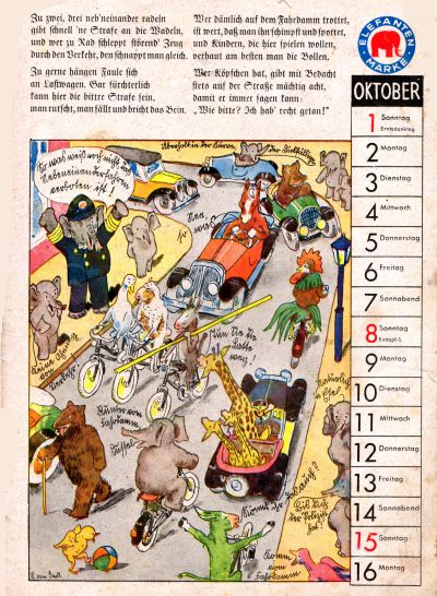Es gab z.B. „die bunten Elefanten-Kalender-Bilderbücher“, die Deutschlands „meistgekauften Kinder- und Jugendschuh“ priesen (Elefantenmarke!) und zu seinem Kauf anregen sollten.