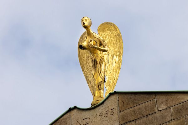 Nachdem vermutlich eine Sturmbö in den vergangenen Tagen einen rund 30 Zentimeter langen Arm des bronzenen Mataré-Engels auf dem Essener Bischofshaus abgerissen hat, ist das hohle Objekt verschwunden. Die Leiterin der Essener Domschatzkammer, Andrea Wegener, appellierte an etwaige Finder des bronzenen rechten Armes samt ausgestrecktem Zeigefinger, diesen zurück zu geben. Der goldglänzende Engel des Künstlers von Ewald Mataré (1887-1965) steht seit 66 Jahren über dem Portal des heutigen Bischofshauses am Burgplatz der Reviermetropole.