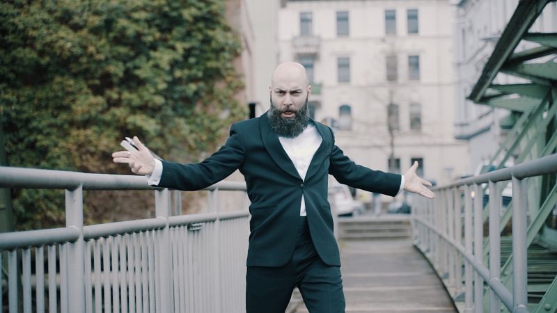 Sebastian Campione versucht bei Verkehrslärm auf der B 7 in Frack und Fliege das wegen Corona verschlossene Opernhaus zu betreten, setzt sich niedergeschlagen und frustriert auf die Stufen. Plötzlich aber bricht es aus ihm heraus, die Noten werden weggeschleudert. Zu virtuos flinker Klavierbegleitung schmettert er uns, später dem bronzenen Engels im Park nebenan, gut gelaunt Mephistos bombastische Arie „Das goldene Kalb“ aus „Margarethe“/(Faust) von Charles Gounod entgegen. „Geld regiert die Welt“ singt er und hat Recht. Wahrscheinlich hat er schon vorausgeahnt, welche Schulden eines Tages im Kampf gegen Corona nötig sein würden. Auch die Zuhörer auf der Nordbahntrasse, auf Wuppertals Treppen, Brücken und Spielplätzen, über der Wupper unter der Schwebebahn können sich der Botschaft dieses musikalischen Glanzstücks nicht entziehen. In der Oper verscheucht Mephisto auf diese Weise die trüben Gedanken des zum Krieg eingezogenen Valentin. Mit diesem Auftritt in der Stadt vertreibt Sebastian Campione virtuos und publikumswirksam jedenfalls Melancholie und Tristesse der Wuppertaler.