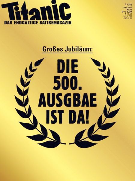 Daß Titanic, „der Goldstandard der Satire“, wie sich das Heft bescheiden selber beschreibt, nun zum 500. Mal am Kiosk erscheint und im Abonnenten-Briefkasten steckt, ist schon einen Glückwunsch wert, denn es gehört schon einer Mut und gehörig viel Chuzpe dazu, ohne Sorge vor Revanche in Satiren und Sottisen, Cartoons und Karikaturen, Fotostorys und anderen Frechheiten aus großen Kübeln die oben bereits erwähnte Häme auszugießen.