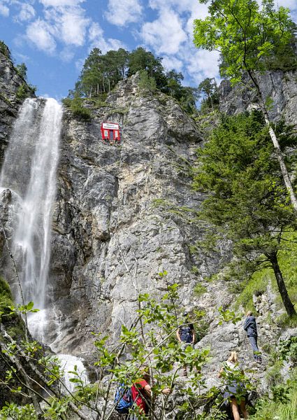 „The Cliffhanger Collection“ beinhaltet Montagen, Entwürfe, Stillleben und Modelle des Künstler-Kollektivs, das sich schon seit Jahren mit touristischen Phänomenen beschäftigt und das Projekt „Cliffhanger“ bis zu seiner Realisierung eingekreist hat. Fotomontagen der Klagemauer mit einem überdimensionalen Shell-Logo, ein Schaufenster des Luxus-Juweliers Cartier auf einer steilen Felswand, die Gloriette als Nachtclub „Chez Sissi“ inszeniert oder das Titelsujet des – nahezu ausschließlich außerhalb Österreichs – weltberühmten Musikfilms „The Sound of Music“ mit dem gleichen roten Häuschen, das auch die Ötschergräben ziert: Die Arbeiten der drei Künstler sind nie frei von Ironie und verstehen es, gewohntes Sehverhalten aufzubrechen und kritische Fragestellungen aufzuwerfen.