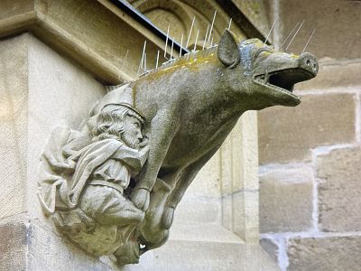 „Judensau“ an der Ritterstiftskirche St Peter in Bad Wimpfen im Tal (Foto J. Schneider)