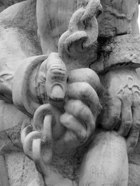 Ein Detail der Engels-Plastik von Alfred Hrdlicka