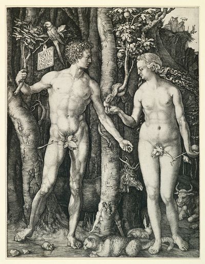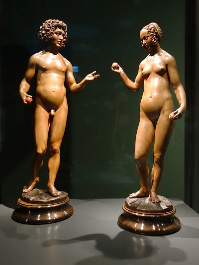 Schon früh setzte auch in den Niederlanden eine breite und dann lang anhaltende Rezeption der Kunst Albrecht Dürers ein. Maßgeblich in Gang gesetzt wurde sie durch Dürers Druckgrafiken – Holzschnitte und Kupferstiche –, die als „ars multiplicata“ zu einer enormen Verbreitung künstlerischer Vorstellungen und bildnerischer Formulierungen des Nürnberger Meisters beitrugen. Diese Einflüsse, seien sie motivischer oder stilistischer Art, detailliert aufzuzeigen ist das Anliegen des dritten Teils des Ausstellung. Exemplarisch sei nur Dürers berühmter Kupferstich „Adam und Eva“ von 1504 herausgegriffen, auf den sich sechs Jahre später Jan Gossart in einem gleichnamigen Gemälde bezogen und den Conrad Meid um 1510-12 in eine Skulpturengruppe aus Buchsbaum umgesetzt hat. Während es sich hier um gleichsam sinngemäße mediale Übersetzungen der Dürer-Grafik in ihrer Ganzheit handelt, wurden manchmal auch nur Einzelmotive aus dem Gesamtzusammenhang herausgelöst, so etwa, wenn Marinus van Reymerswale aus Dürers Holzschnitt „ Der Tempelgang Mariens“ (1503) nur eine einzige Figur übernimmt und in seinem Gemälde „Der Wertsachverständige“ (1535-45) zum bildbeherrschenden Akteur werden läßt.