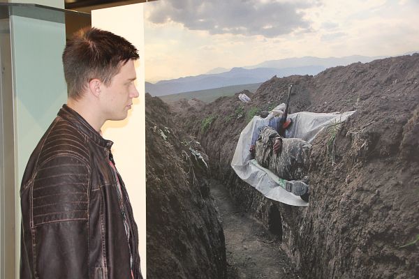 Und genau da liegt das Faszinierende in diesem Foto. Ein Soldat ruht sich in einem Schützengraben aus. Der Hintergrund erscheint völlig ruhig und friedlich, ganz widersprüchlich zu dem, was man eigentlich mit dem Dasein von Soldaten verbindet. Krieg. Angst. Stress. Dieses Foto strahlt genau das Gegenteil aus. Tom Boger