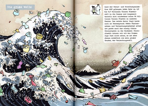 Aber ob das alles stimmt, was Micha da erzählt und kritzelt, z.B. köstliche Klischees über Studentinnen gewisser Fachrichtungen? Man darf ihm bei aller Authentizität auch ein ganz klein wenig Schummelei und Hintergründgkeit unterstellen, wenn nicht gar faustdicken Humor, denn: „Humor in feinster Bio-Qualität*, der nachhaltig zum Schmunzeln anregt. (*Kann Spuren von veganem Mett enthalten)“ schreibt der Verlag zu Micha Marx´ echt lustigen Ein- und Ausfällen. Stimmt. Und unterdessen, bei dem ganzen Jux, macht Micha ulkig, aber subtil auf die großen Probleme der Umwelt wie Mikroplastik und Erderwärmung aufmerksam, die unser aller Leben in sichtbarer Zukunft gefährden.