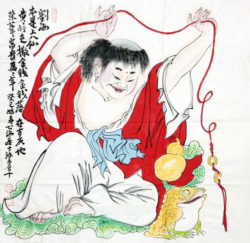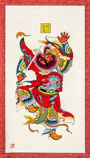 Im ersten der 21 Räume einer ehemaligen Tabak-Manufaktur grüßt auf 80x120cm Zhong Kui als Türwächter in Mandarin-Gewandung. Mit einer Fledermaus als Kundschafter, um böse Geister rechtzeitig entdecken zu können. Holzdrucke mit ihm sollen auf einen Kaiser der Tang-Dynastie zurückgehen, der sein Bildnis - er dürfte eher häßlich ausgesehen haben - zur Abschreckung von Dämonen an der Palast-Tür anbringen ließ. Der oberste Höllenrichter schickte ihn dann zu Bekämpfung böser Geister mit einer langen Liste zurück zu den Menschen. Dort mit dabei der Lügenteufel, der Raffgierteufel, der Lustgierteufel und der Teufel der glotzäugigen Dummheit. Irgendwie beschleicht den Leser der begleitenden Text-Tafeln das Gefühl, dieser Auftrag wäre noch immer nicht ausgeführt worden. In mehreren Räumen dargestellt ist der Herdgott Zao Jun, der gemeinsam mit dem Gott des Reichtums und mit dem Erdgott in Form seiner symbolischen Anwesenheit das Familienleben im Haus prägte. Häufig mit dabei: der Hund und der Hahn als Vertreter aller Haustiere. Auch Pferde sind bildlich dargestellt, weil sie Botschaften aller Art in den Himmel befördern sollten.