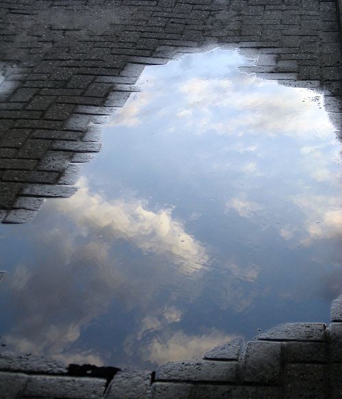 Pralle Wolken jagen sich in Pfützen