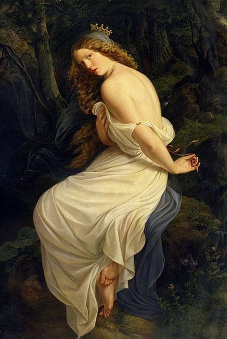 Die Thäler weit und breit, Die Bächlein, wie verirret Geh'n durch die Einsamkeit. Da drüben sah ich stehen Den Wald auf steiler Höh, Die finstern Tannen sehen In einen tiefen See. Ein Kahn wohl sah ich ragen, Doch niemand, der es lenkt, Das Ruder war zerschlagen, Das Schifflein halb versenkt. Eine Nixe auf dem Steine Flocht dort ihr gold'nes Haar, Sie meint', sie wär' alleine, Und sang so wunderbar. Sie sang und sang, in den Bäumen Und Quellen rauscht' es sacht Und flüsterte wie in Träumen Die mondbeglänzte Nacht. Ich aber stand erschrocken, Denn über Wald und Kluft Klangen die Morgenglocken. Schon ferne durch die Luft. Und hätt' ich nicht vernommen Den Klang zu guter Stund’, Wär' nimmermehr gekommen Aus diesem stillen Grund. Joseph Freiherr von Eichendorff