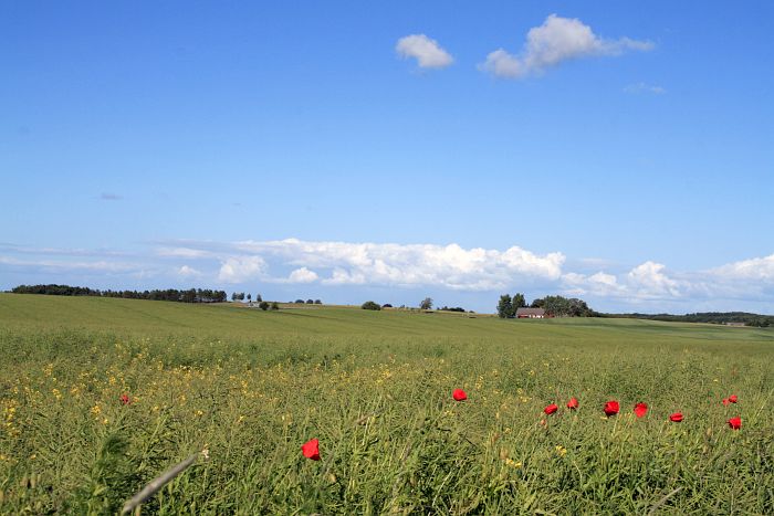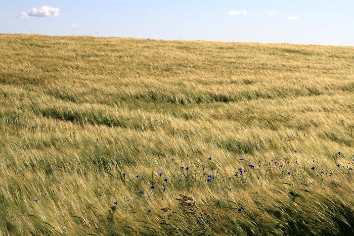 Im Mittag rauscht das heilige Brot. Die Linde schneit, die Wachtel schlägt, der Bauer bang das Wetter wägt. Die erste Birn bricht Margaret, drauf überall die Ernt angeht. Im Schatten steht der Schnitterkrug, die Magd geht mit dem Ochsenzug. Der starke Leib, die schwere Fracht: Im fernen Land ein Donner kracht. Mög uns der Himmel gnädig sein — Sankt Jakob, Dank! Das Korn fährt ein. Josef Weinheber