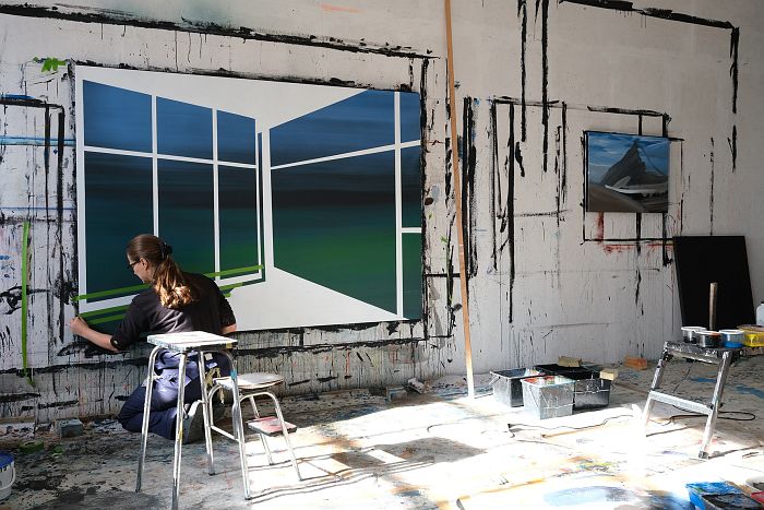 For over twenty-five years, Tina Gillen (b. 1972, Luxembourg) has been producing a body of pictorial work, driven by an continually renewed research on the relationship that we as humans have with the world around us, in it is constructed and natural forms. Her paintings are distinguished by the way they nurture a certain ambiguity, between abstraction and figuration, construction and improvisation, the surface of the canvas and the translation of a space. Tina Gillen has been living in Belgium for a long time (she lives and works in Brussels and teaches painting at the Royal Academy of Fine Arts Antwerp), and is currently representing Luxembourg at the Biennale Arte 2022 in Venice, with her project Faraway So Close.