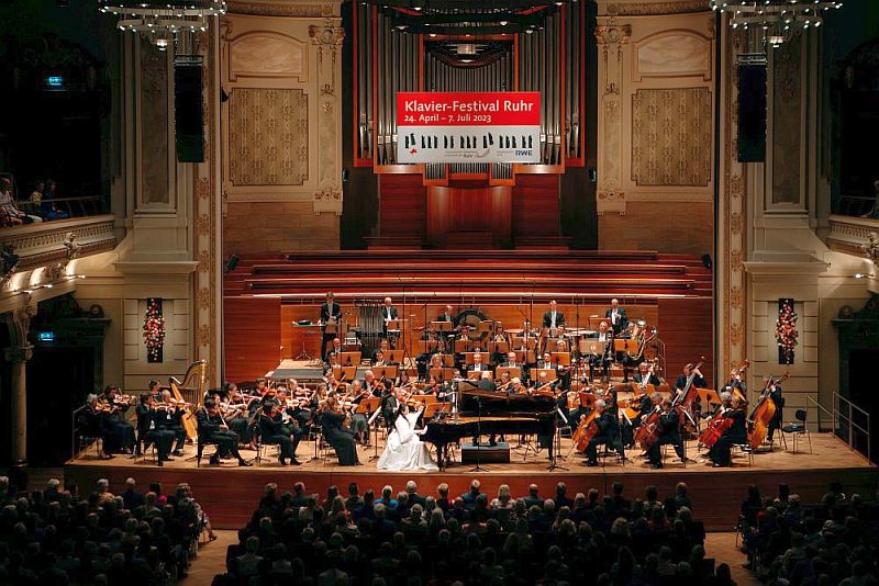 Im ausverkauften Großen Saal begrüßte diesmal Ministerin für Kultur und Wissenschaft des Landes NRW Ina Brandes das Publikum zu diesem letzten Konzert der letzten, 28. Saison des Klavier-Fesitvals Ruhr unter Franz Xaver Ohnesorg, dem das Publikum lange applaudierte. Ministerin Brandes sprach über die Bedeutung dieses Leuchtturmprojektes für das Land, erzählte über das Education-Projekt des Festivals in Duisburg-Marxloh und ihren Besuch daselbst. Sie hatte dort 26 Kinder aus 26 Nationen bei Choreographie und Tanz erleben können und gespürt, welche Bedeutung das Projekt dort seit 2008 für den Brennpunkt-Stadtteil bekommen hat. (Bei Interesse siehe „Musik in Marxloh“). Übrigens das Klavier-Festival Ruhr mit dieser Education-Arbeit erhält keinerlei staatliche Unterstützung!